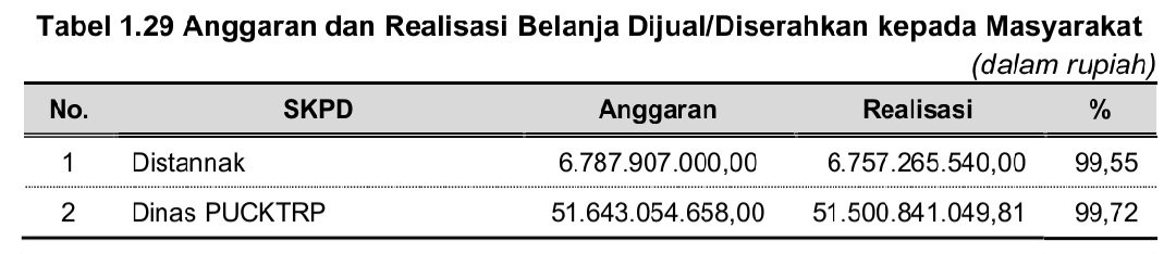 1) Belanja untuk Dijual/Diserahkan kepada Masyarakat pada dua SKPD