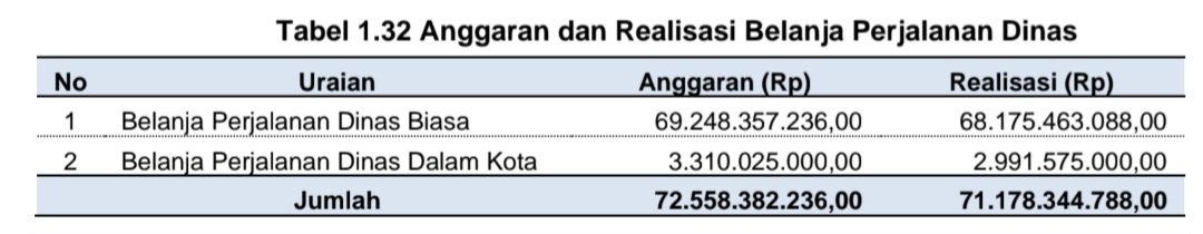 DIKETAHUI : Pemkot Lubuk Linggau Tahun 2023 menganggarkan Belanja Perjalanan Dinas Dalam Negeri sebesar Rp72.558.382.236,00 dengan realisasi per 31 Desember 2023sebesar Rp71.178.344.788,00 atau 98,10% dari anggaran, dengan rincian sebagai berikut.