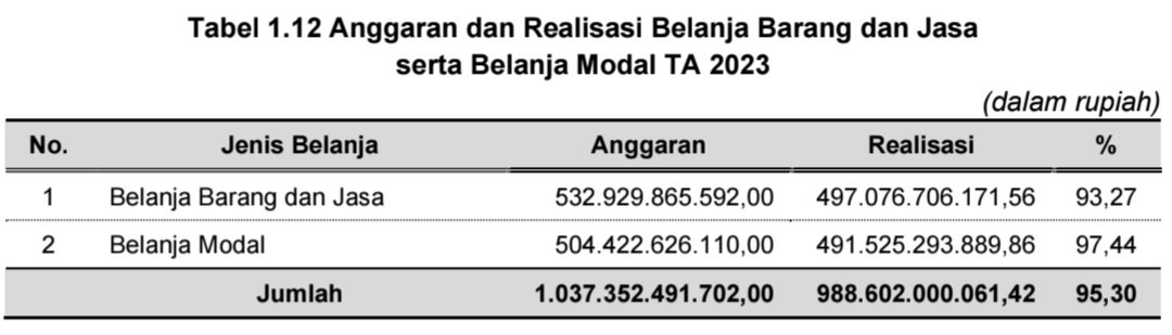 Rinciannya, dari Belanja Barang dan Jasa sebesar Rp24.005.056.700,00 dan dari Belanja Modal sebesar Rp215.811.390,00