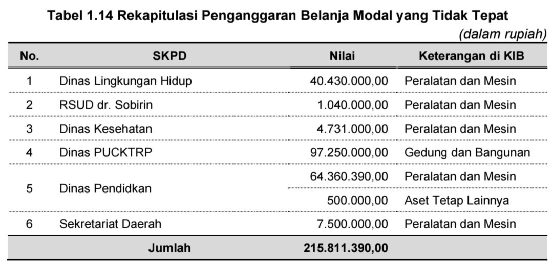 Berdasarkan hasil pemeriksaan dokumen anggaran dan pertanggungjawaban atas belanja yang dilaksanakan serta pemeriksaan dokumen atas mutasi antar KIB Aset Tetap, diketahui terdapat anggaran dan realisasi Belanja Modal yang tidak tepat, dengan uraian sebagai berikut.