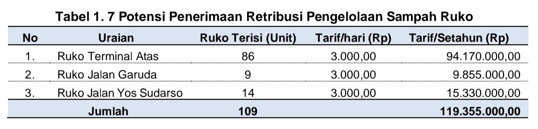 3) Retribusi Pengelolaan Sampah Ruko sebesar Rp119.355.000,00,00.