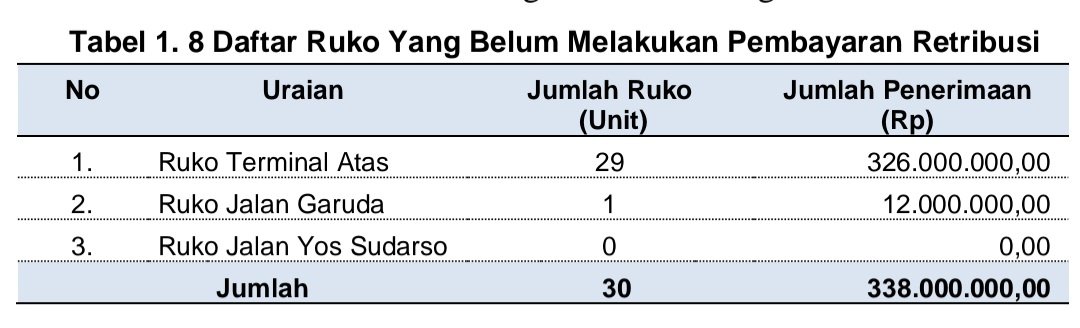 2) Retribusi Pelayanan Pasar Grosir dan Pertokoan Belum Tertagih dan Belum