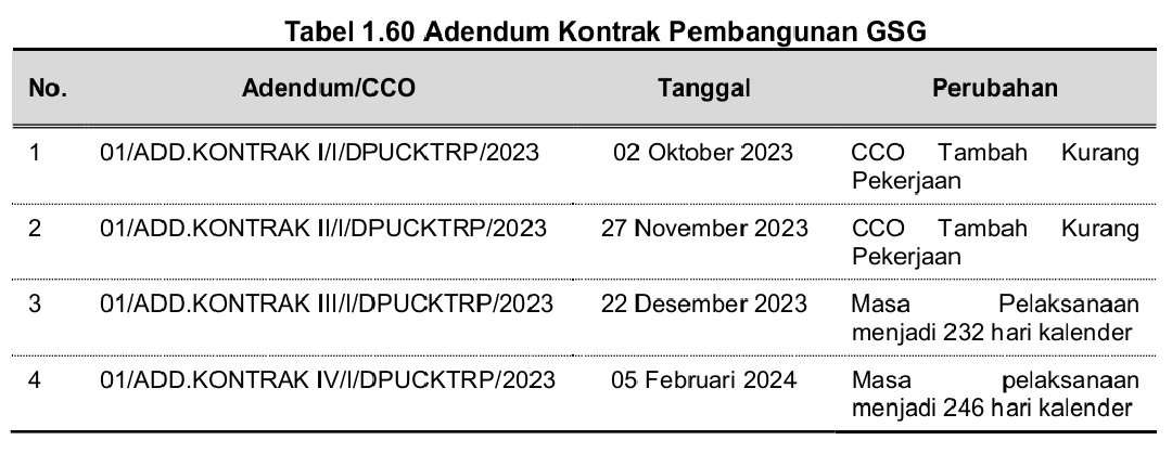 Dalam pelaksanaannya dilakukan empat kali adendum kontrak dengan uraian sesuai tabel sebagai berikut.